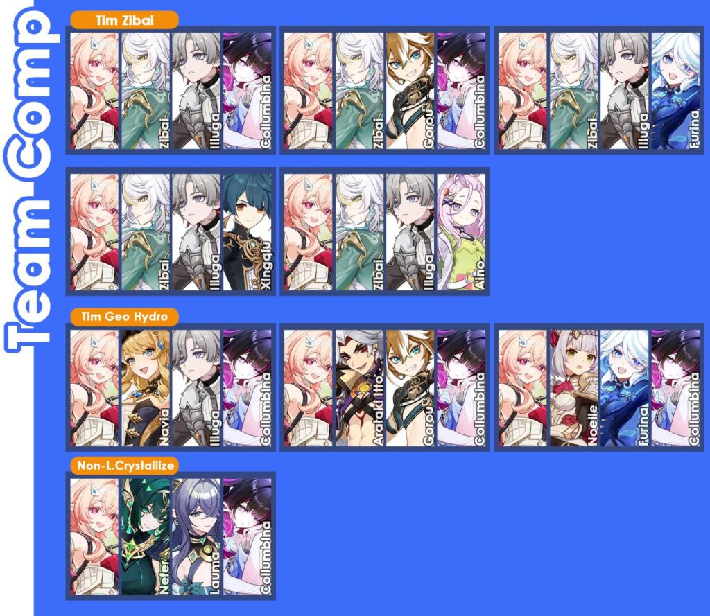 Sebagai penggantinya, kamu bisa memakai Gorou untuk menggantikan Illuga, atau Furina, Yelan, Xingqiu untuk menggantikan Columbina.