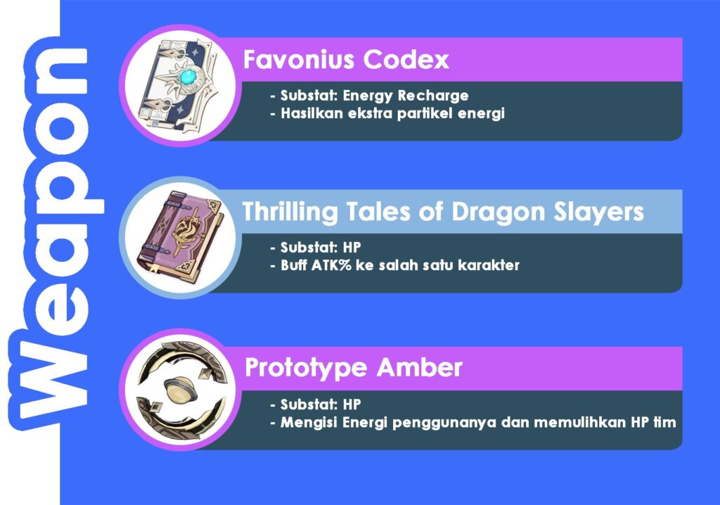 - Energy Recharge% (sekitar 220-260%)