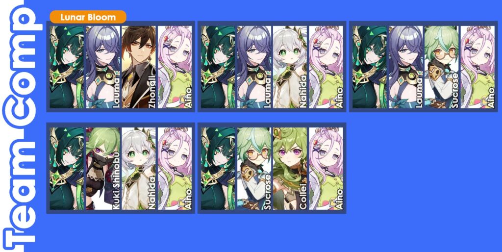Karena Nefer membutuhkan Verdant Dew dan karakter Hydro untuk memicu reaksi Bloom/Lunar-Bloom, maka dari itu keduanya menjadi aspek yang penting dalam membentuk timnya.
