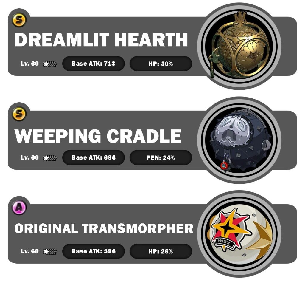 Untuk opsi A-Rank-nya, sayangnya tidak ada W-Engine yang benar-benar sesuai dengan permainan Lucia. Tapi, kamu masih bisa menggunakan W-Engine dari role lain yang memiliki substat HP%, seperti W-Engine ini. Meski efek pasifnya tidak bisa aktif, tapi setidaknya bonus HP yang disediakan akan memudahkan pemain mencapai target HP yang dibutuhkan Lucia untuk mencapai potensi maksimalnya.