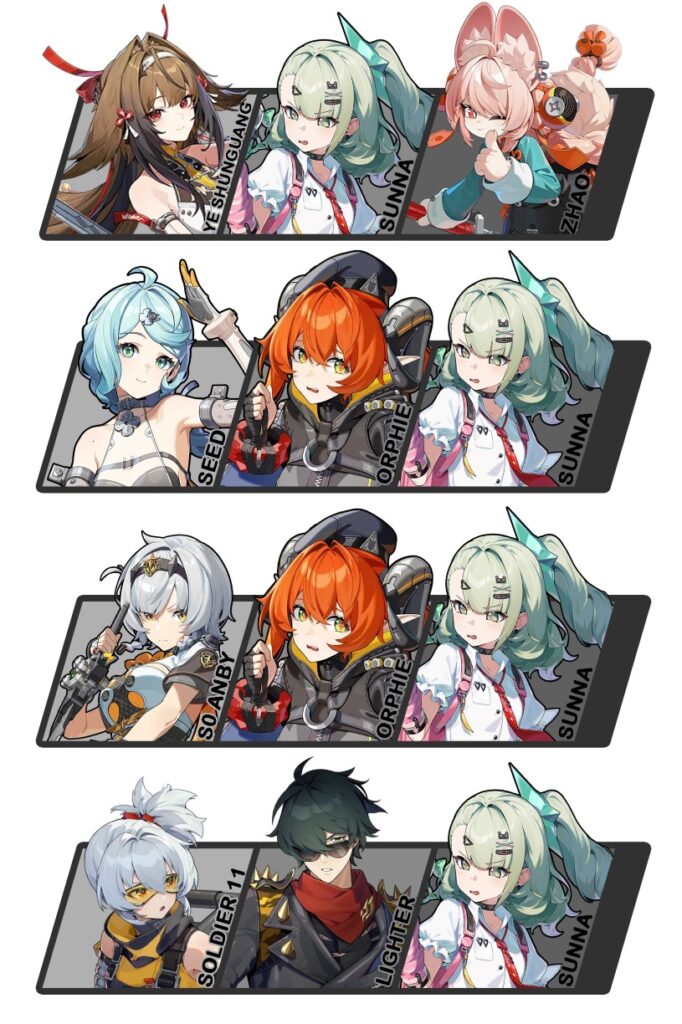 Pada dasarnya, Sunna bisa dipasangkan dengan banyak DPS, berkat buff-nya yang universal. Selama Agent tersebut menggunakan scaling ATK, maka dia bisa masuk ke dalam timnya. Dengan begitu, tim Rupture sudah pasti dicoret, karena Agent Rupture menggunakan stat HP.