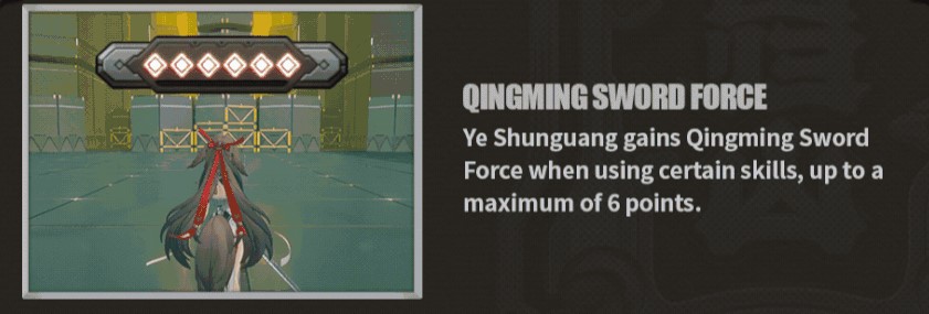 Jika berganti karakter, maka durasinya akan di-pause hingga karakter aktif kembali ke Ye Shunguang. Mekanik ini bisa dimanfaatkan untuk mengaktifkan semua skill dan buff dari karakter lain.