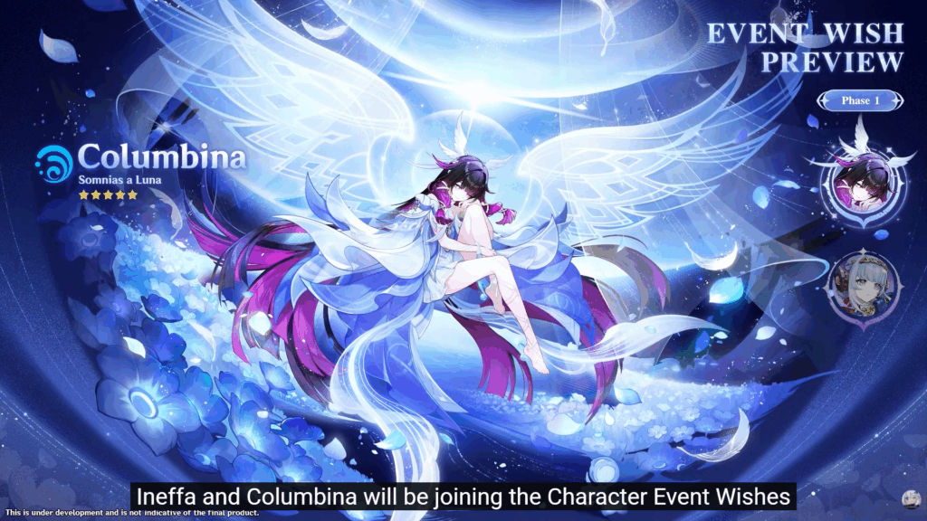 Dalam Genshin Impact versi Luna 4 ini, akan ada 3 karakter baru yang bisa pemain dapatkan, yaitu Columbina, Zibai, dan Illuga. Ketiganya memiliki peran dan permainan yang berbeda, yang bisa kamu lihat sekilas di deskripsi di bawah ini.