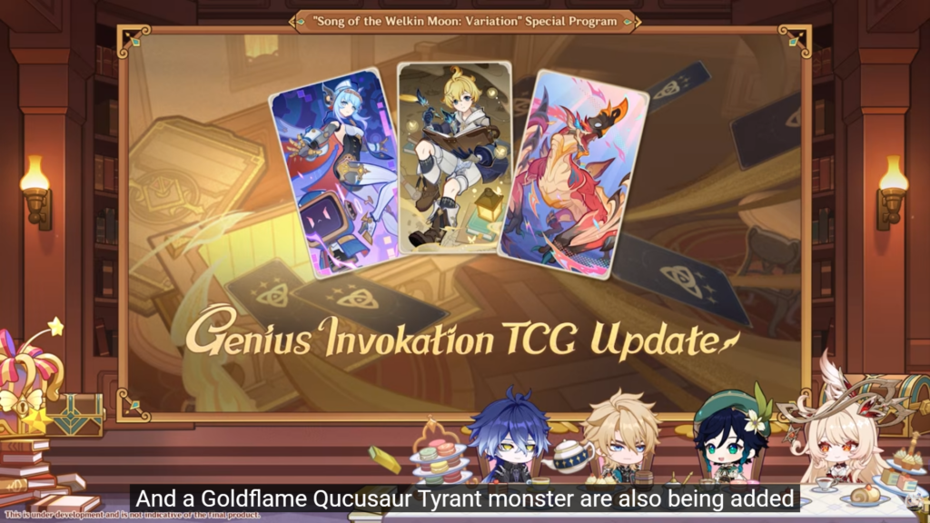 Seperti biasa, mode Genius Invokation TCG bakal menerima Update juga, berupa sejumlah kartu baru. Yang sempat disebutkan adalah dua kartu karakter dan satu karakter monster.
