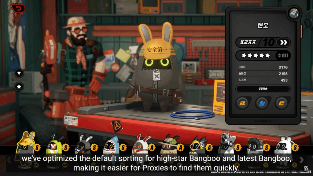 Setelah versi 2.4, sistem pengurutan atau Sorting dari Bangboo akan diperbaiki untuk meningkatkan kenyamanan bermain. Nantinya, Bangboo yang lebih baru, dengan rarity yang lebih tinggi, akan didahulukan sebelum Bangboo lainnya.
