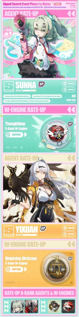 Banner Agent dan W-Engine ZZZ akan dibagi ke dalam 2 fase, yang masing-masing bakal berjalan selama beberapa minggu. Berikut informasi terkait banner-banner tersebut.